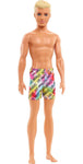 Barbie Ken Beach Doll with Blonde Hair Dressed in Colorful Los Angeles-Print Swim Trunks