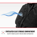 - VENTILATED CLEAT COMPARTMENT: Special separate ventilated compartment included to store cleats to limit mess and odor