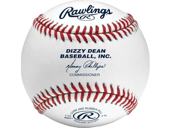 This Baseball has Rawlings super stitch raised seams with full grain leather cover and composite cork and rubber center which makes it perfect for Dizzy Dean League Baseball.
